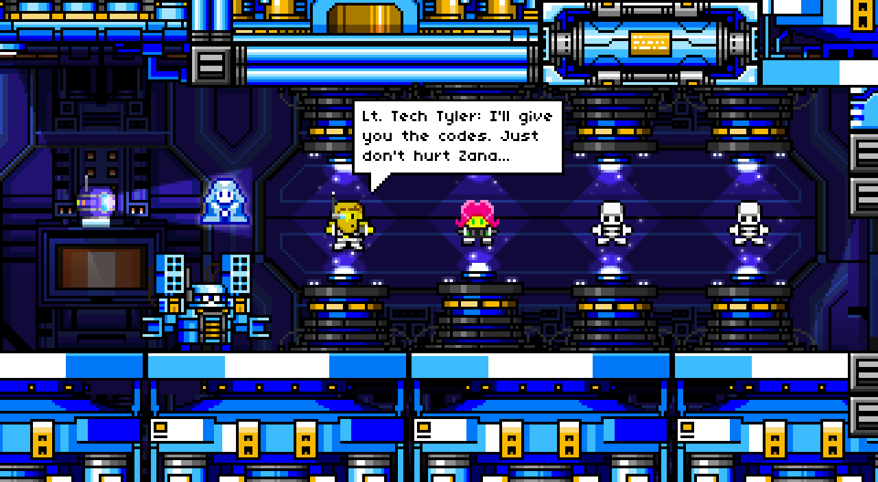 Set in Earth's distant future, Rex Rocket references the classic story of Man vs. Machine. You play Captain Rex Rocket, a former war hero who now spends his days transporting scientists around to the far reaches of the universe in his epic Star Cruiser, the S.S. Montana. The game begins on Earth with Rex leaving on a routine mission for the Council of Science, to transplant bio-engineered Terra-Oozlings to an uninhabited planet on the other side of the galaxy. While the ship's crew are all in cryo-sleep, all heck breaks loose when Terra-Oozings escape their tanks and cause the ship's main computer, LAUREN (Logic Analysis User Reactive Entity Network), to go insane. It's up to Rex Rocket to stop the computer, rescue his crew, and save the day!